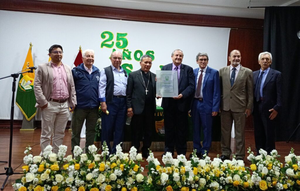 Hay que destacar la presencia de Monseñor Hermenegildo Torres Asanza, obispo de Guaranda, quien agradeció en su menaje a quienes entregan su vida a la educación con vocación, fe y compromiso y de modo especial a los Hermanos de la Sagrada Familia. En su intervención, el obispo destacó el impacto positivo de la educación cristiana en la formación integral de las nuevas generaciones y la importancia de seguir apostando por una enseñanza basada en los valores del Evangelio. Entregó una placa conmemorativa de parte de la Diócesis, agradeciendo la labor de los distintos Hermanos que han pasado por Guaranda en estos 25 años.