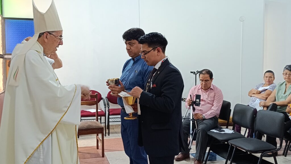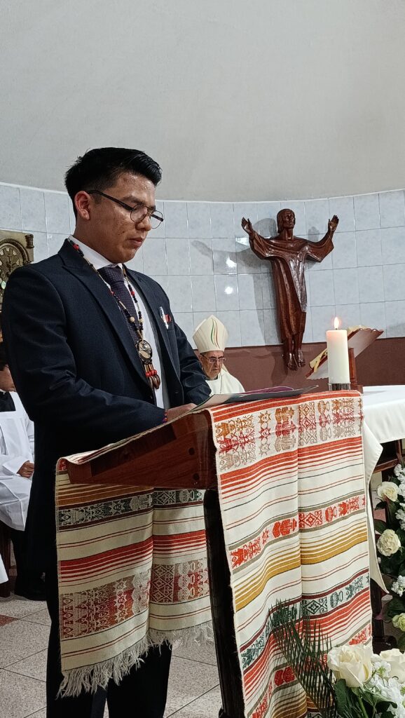 El día 1 de Noviembre hizo su Primera Profesión religiosa Vicente Santi, de una comunidad indígena cercana a Puyo. La ceremonia se realizó en la capilla de la comunidad de Puyo. Se hicieron presentes su familia, las comunidades de Hermanos de Ecuador y algunos amigos y miembros de la Fraternidad Nazarena de Puyo. El celebrante, Mons, Rafael Cob comentó las lecturas de la solemnidad de Todos los Santos haciendo referencia a la consagración religiosa de Vicente. Los votos fueron recogidos por el Hno. Fernando Cob, Delegado del Hno. Provincial en Ecuador.